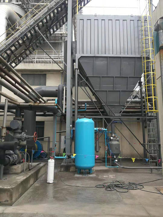 渣庫(kù)放渣過(guò)程中,由于是采用敞口式灰車裝灰,造成飛灰特嚴(yán)重。除塵方式采用現(xiàn)場(chǎng)新建一臺(tái)布袋脈沖塵器,除塵器將收集到的原有渣庫(kù)的揚(yáng)灰,通過(guò)氣力輸送系統(tǒng),將灰渣送至原有300方鋼渣庫(kù)中貯存。此方案完美解決了渣庫(kù)飛灰嚴(yán)重的問(wèn)題。